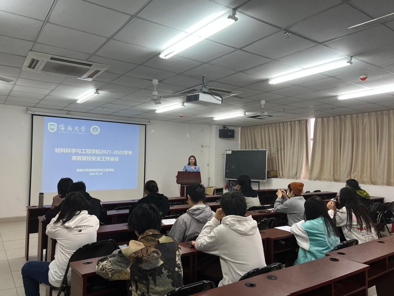 会上,学工办负责人郎筱宇根据公司有关管理规定,并结合公司实际情况就留校生疫情防控措施落实、住宿管理、违章电器等规章制度、衣食住行等后勤服务、安全教育等各方面作出安排。同时,强调指出留校员工要严格执行每日健康报备,严格遵守 “四必报告”制度,即出岛必报,前往中高风险地区必报,出国(境)或回国必报,体温异常必报。不私自出省,严格遵守请假审批制度。