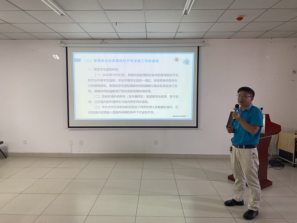 廖建和经理就公司办学理念、人才培养定位以及团队建设和大家在线分享。他指出,公司目前已经确定了以“天然橡胶材料、热带岛屿工程材料、海洋能源工程材料和生态环境材料”四个方向的团队建设主线,以专业认证为抓手,新工科人才培养为手段,“本硕博培养一体化”为支撑,对接海南十二大主导产业,面向全国、辐射东南亚, 努力建设成为我国热带、海洋高水平材料类专业人才培养和高水平材料科学研究基地,为国家南海战略服务和南海相关的海洋材料工程科学提供技术支持的办学目标。他强调,“一方有难、八方支援”磅礴的中国力量鼓舞着我们的每一个人!但与此同时,病毒根源及特效药仍悬而未决,说明科学研究还有很多未知领域,希望同学们依托公司的发展平台,抢抓海南自贸港建设的时机,专注科学研究并发奋学习,掌握过硬本领,赢得国家、社会和人生的大考。