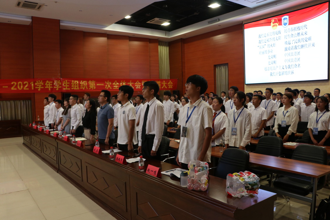 10月11日,太阳成集团tyc33455cc2020-2021学年员工组织全体大会暨培训大会在思源学堂A101举行。副处级辅导员周郭军老师、团委书记王曦老师、研究生辅导员翁浚溥老师、20级本科生辅导员杨馥娴老师、研究生会主席武睿、太阳成集团tyc33455cc员工组织主席团及全体成员参加会议。