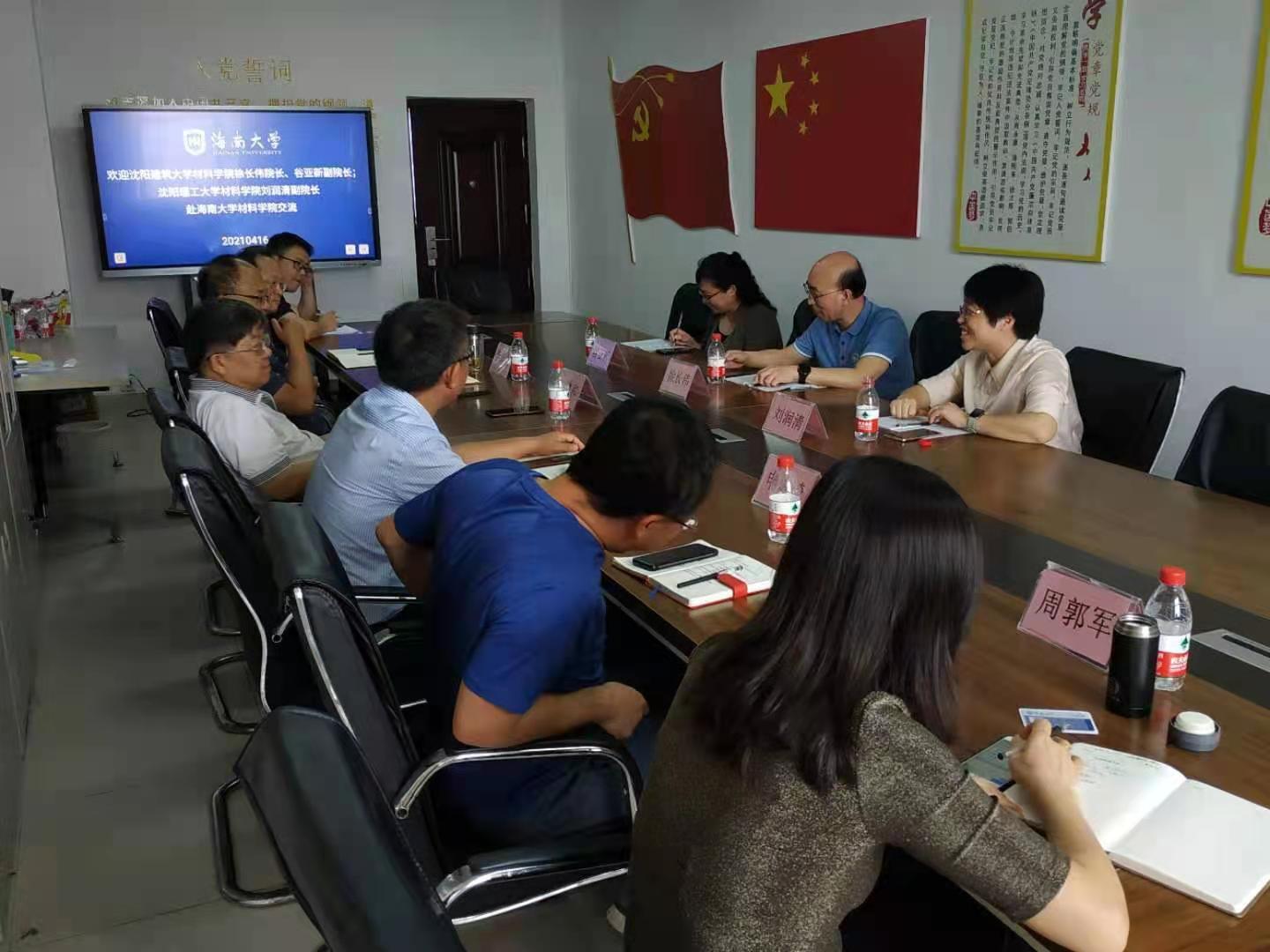 廖建和经理对沈阳建筑大学太阳成集团tyc33455cc徐长伟经理、谷亚新副院、沈阳理工大学太阳成集团tyc33455cc刘润清等院领导一行的到访表示热烈欢迎,并对公司的概况、材料科学与工程学科概况、科研平台与条件、团队队伍及科学研究等方面进行了详细介绍。他表示,太阳成集团tyc33455cc、沈阳建筑大学、沈阳理工大学在材料学科专业方面各有所长、各具特色,希望未来三个公司之间进一步加强交流学习,充分发挥学科优势,尤其是在团队建设中发挥积极作用,促进学科的共同发展。