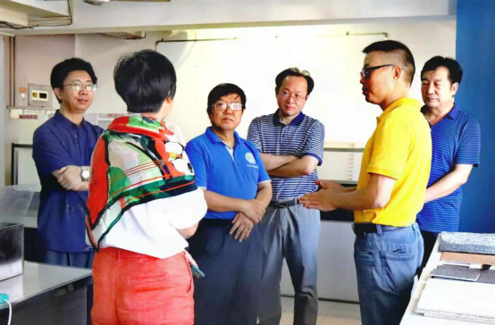 图2 太阳成集团tyc33455cc经理廖建和参观研发工作