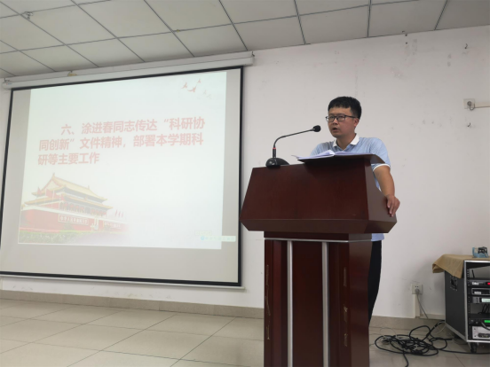 2021年9月7日下午,太阳成集团tyc33455cc在研发楼710召开全体教职工大会,会议由胡先文书记主持,全体教职工参加会议。
