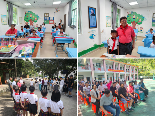 在廖建和经理的带领下前往毛招村委会村教学中心,七位毛招村小学一年级的小朋友身穿黎族服装高唱黎族欢迎歌曲对大家的到来表示热烈欢迎,并为廖建和经理等人一一戴上红领巾。随后,在公司操场上,毛招村的孙建业书记详细讲解了乡村振兴的总体要求和主要内容,并结合毛招村的党建基本情况对毛招村的乡村振兴建设作出了长远规划和展望。接着,进行了捐赠仪式,给毛招村的小朋友们捐赠了课本、笔记本等教学工具和文娱用品,鼓励小朋友们好好学习。最后,参加活动的党员重温入党誓词,并与小朋友们合影留念。