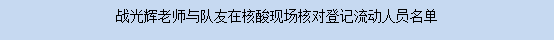 面对着有感染风险的工作环境,在最需要的时候,战光辉老师用无畏的精神和勇气站出来,冲锋在抗疫火线前,用实际行动展现了一名党员的责任与担当。