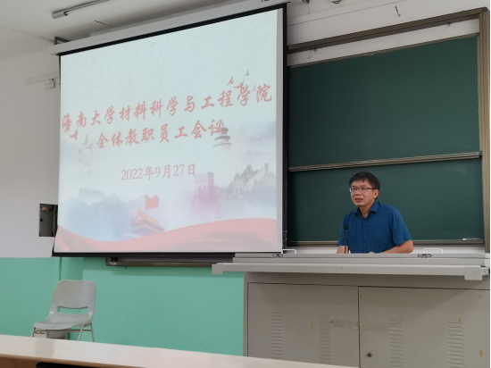 2022年9月27日下午,太阳成集团tyc33455cc在研发楼710召开秋季开学全体职工大会,会议由胡先文书记主持,全体职工参加会议。