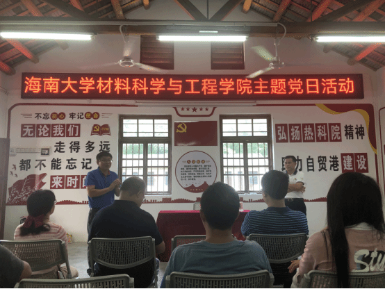 教工党员及青年教师在联昌试验站旧址集中了解了“两院”的发展历程,参观了建院之初的茅草房和食堂等旧址,并聆听了陈海青同志讲授的主题党课,追忆了何康经理等老一辈科研工作者“丹心耀南疆”的爱国奉献事迹,感悟了“海大精神”——即“丹心耀南疆”的爱国奉献精神、“草庐创伟业、荒滩筑新城”的艰苦奋斗精神和“敢闯敢试、敢为人先”的改革创新精神。并面向鲜红的党旗,重温了入党誓词。