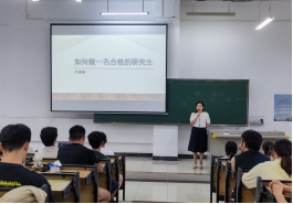 公司督导卢凌彬老师主讲了“如何做一名合格的研究生”。她鼓励研究生新生要师从导师、自身努力、规划未来,最终成长为一名合格的研究生。