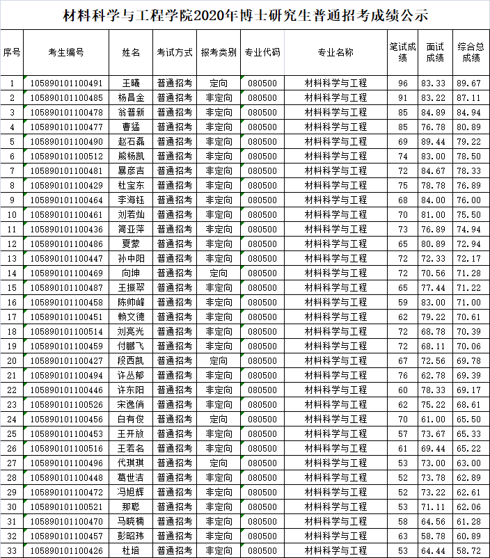 2020年博士研究生普通招考成绩公示