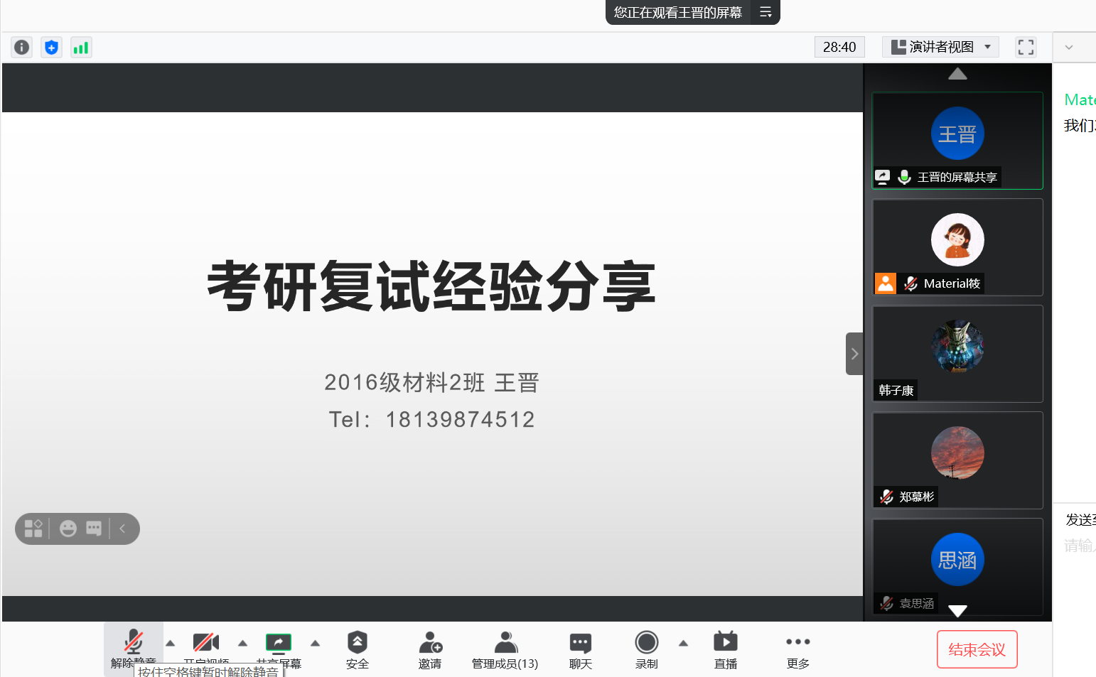 辅导员郎筱宇老师对交流会做了总结,她希望同学们一定要重视考研复试,走好人生关键一步,提醒毕业生在考研复试准备过程中,应提前了解院校往年的录取信息,及时联系公司官方人员,确保自己能够成功上岸;同时建议同学们脚踏实地,不断提升自身专业水准,练就过硬本领、培养过硬水平,提升核心竞争力。
