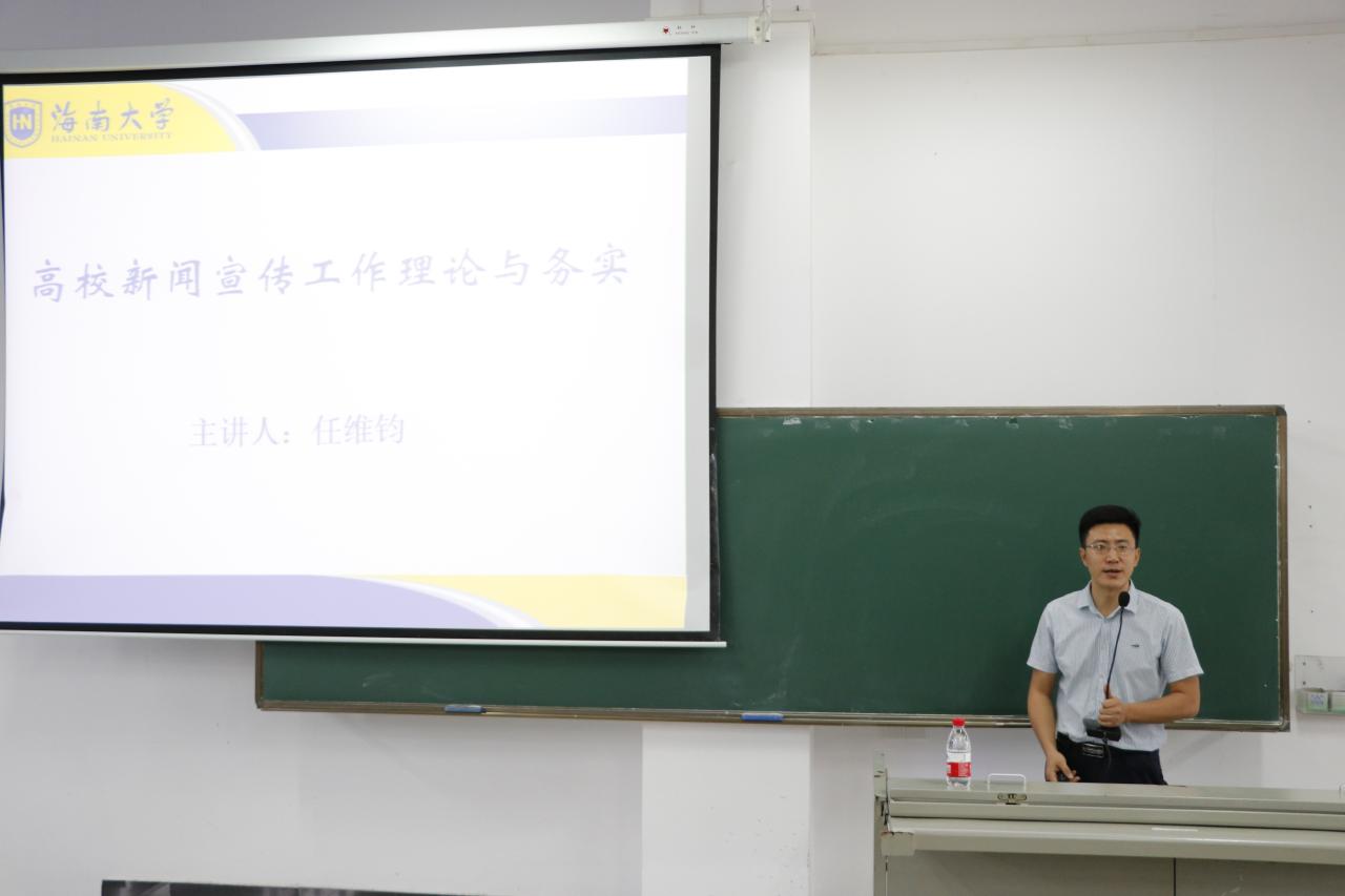 为了提升员工组织成员新闻宣传工作的能力,更好地做好宣传相关工作,展示公司员工活动风采。太阳成集团tyc33455cc于10月17日上午在5号教学楼314教室举办了“高校新闻宣传工作理论与实务”专题培训大会。太阳成集团tyc33455cc党委宣传部理论教育科科长任维均主讲,2020级本科生辅导员杨馥娴及全体员工组织干部参加。