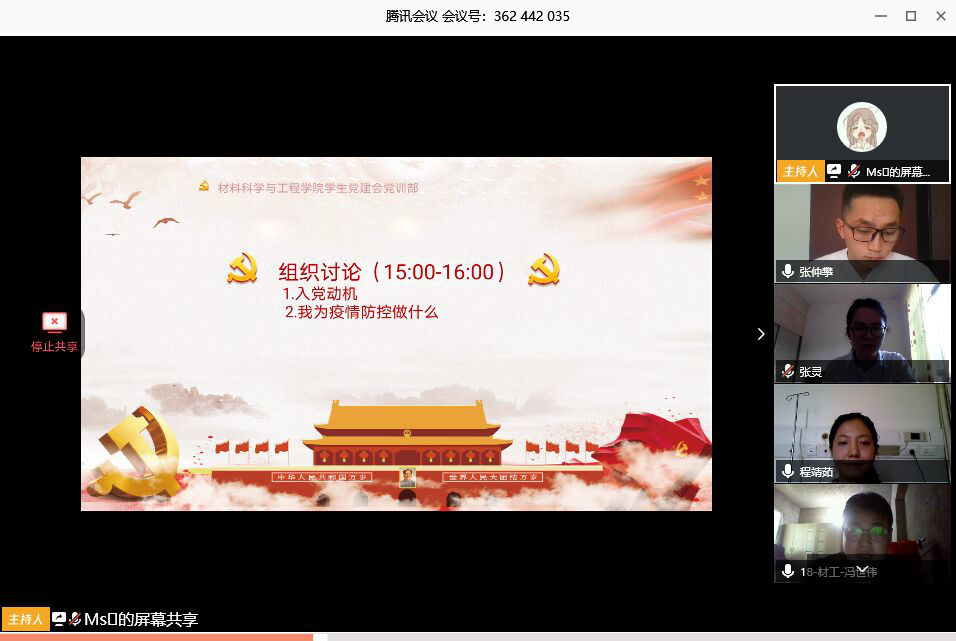2020年5月5日,太阳成集团tyc33455cc分党校2020年春季发展对象培训班线上组织讨论活动采用视频会议的形式成功召开。