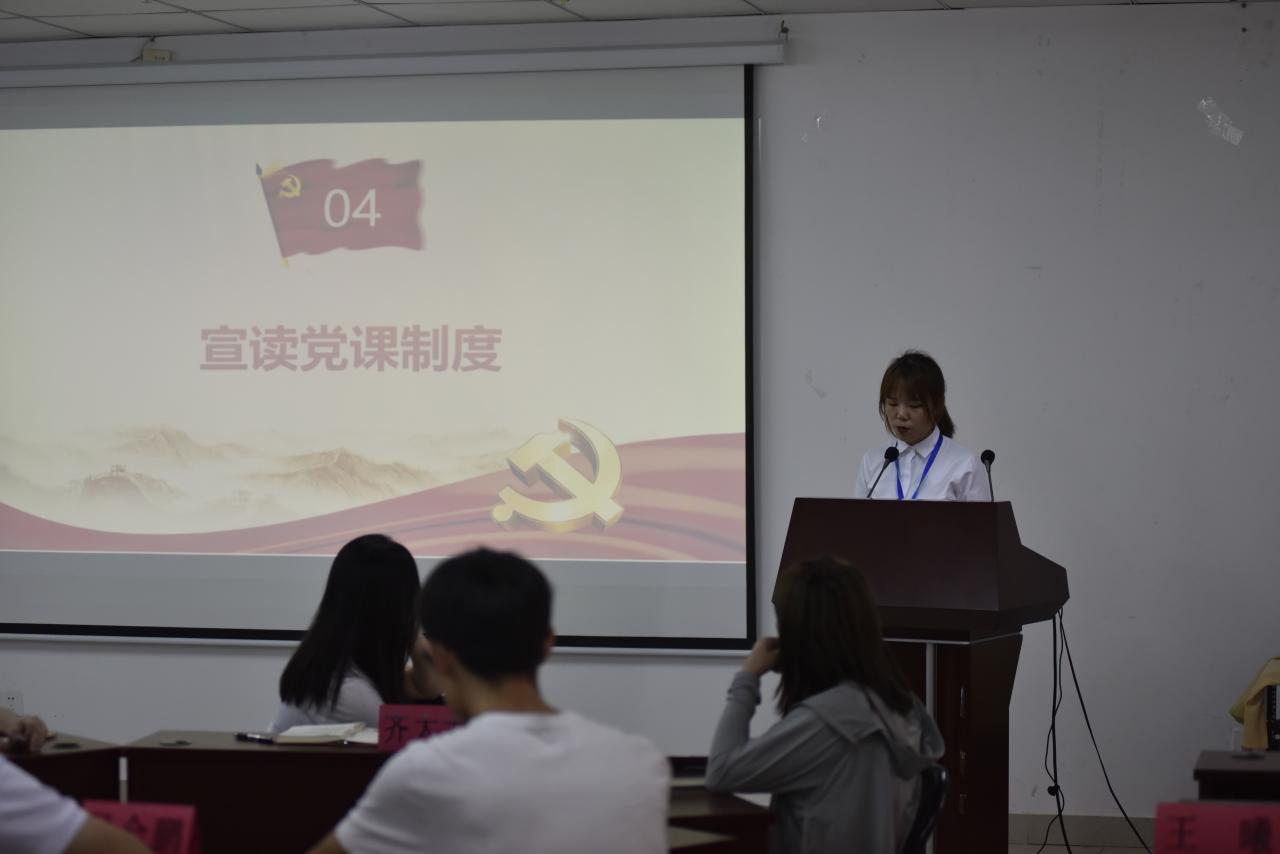 员工党建会陈书瑶宣读《材料科学与工程公司党课管理制度》
