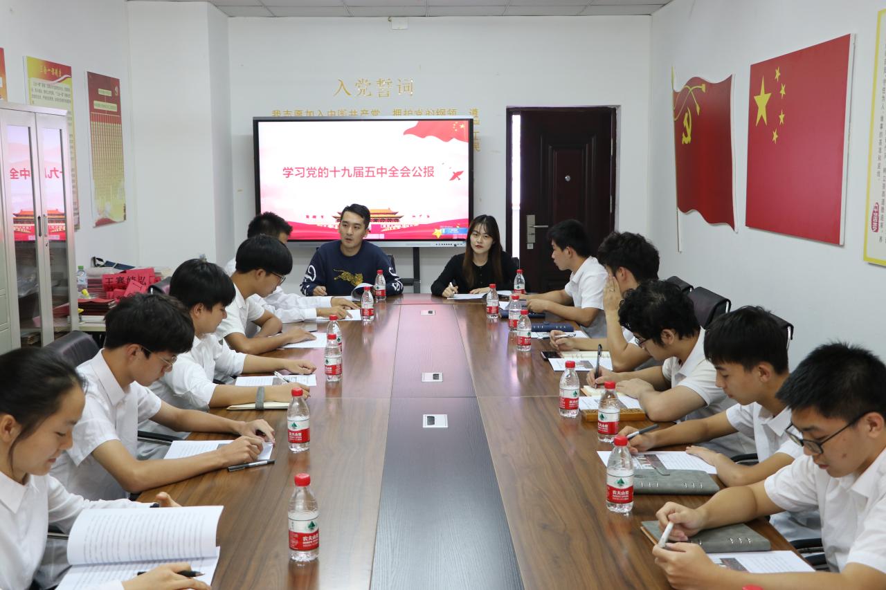 会议伊始,团委书记王曦带领员工组织成员阅读学习十九届五中全会公报。他指出,党的十九届五中全会是在我国将进入新发展阶段、实现中华民族伟大复兴正处在关键时期召开的一次具有全局性、历史性意义的重要会议。他强调,公司师生群体要精准落实全会精神,员工干部要起好带头作用,做好宣传学习工作,按照中央以及教育部有关文件精神,迅速在全院范围内,通过组织开展员工干部内部学习会议,全体员工团支部书记交流会议,以班级为单位的班级学习会议等全面系统地学习传达全会精神,同时在员工党员培训活动中安排专题学习,做到全面系统学、联系实际学,用心学进去、用情讲出来、用力做起来。