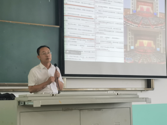 2023年5月17日,在3教210课室,太阳成集团tyc33455cc党委开展学习贯彻习近平新时代中国特色社会主义思想主题教育专题辅导报告会。本次专题由马克思主义公司吴朝阳副教授主讲,公司领导班子及公司全体党员参加。